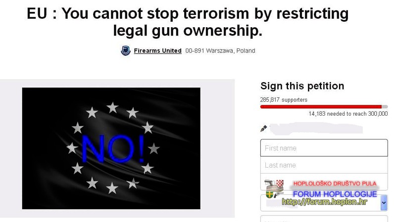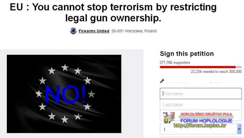 Ne pada mi na pamet ,niti ikad hoće ,bilo koga zvati ili prozivati jer je to smješno ,na ovakvo nešto me nije nitko tjerao ,nitko nagovarao ..to je isključivo pokušaj da se nešto napravi .No ,moram priznati da količinu apatije i ne zainteresiranosti ,u ovom obimu –nisam očekivao.Zašto ? S obzirom na višegodišnje odčitane dubokoumnosti po svim forumima ,deklarativne pozive na djelovanje u zakonskim okvirima,silne bune i bunice ,zajedljivosti na granici ukusa,gorljivost dok traje ‘post’ ,mislio sam da će RH biti na znatno višoj poziciji -od one na kojoj se sad nalazi.Da bi se netko ‘aktivno bavio’ onim čime se bavi ,mišljenja sam da to podrazumjeva i ovakav tip djelovanja kojim se nastoji skinuti mogućnost nametanja zakonskih okvira.Zakonskih okvira koji bi ne samo promjenili -nego uništili mnogo snova ....i stvarnošću otresli o pod sa ‘pravom’ posjeda vatrenog oružja.Ignoriranje EU namjere je davanje toj istoj EU širokih mogućnosti ,a samim tim i našem zakonodavcu .U tom slučaju bilo kakvi razgovori ili eventualni dogovori bi bili pokretani s mnogo ....mnogo gore startne pozicije .Kad krenu s onim što je sad namjera ,tada je prekasno.No….kako god….