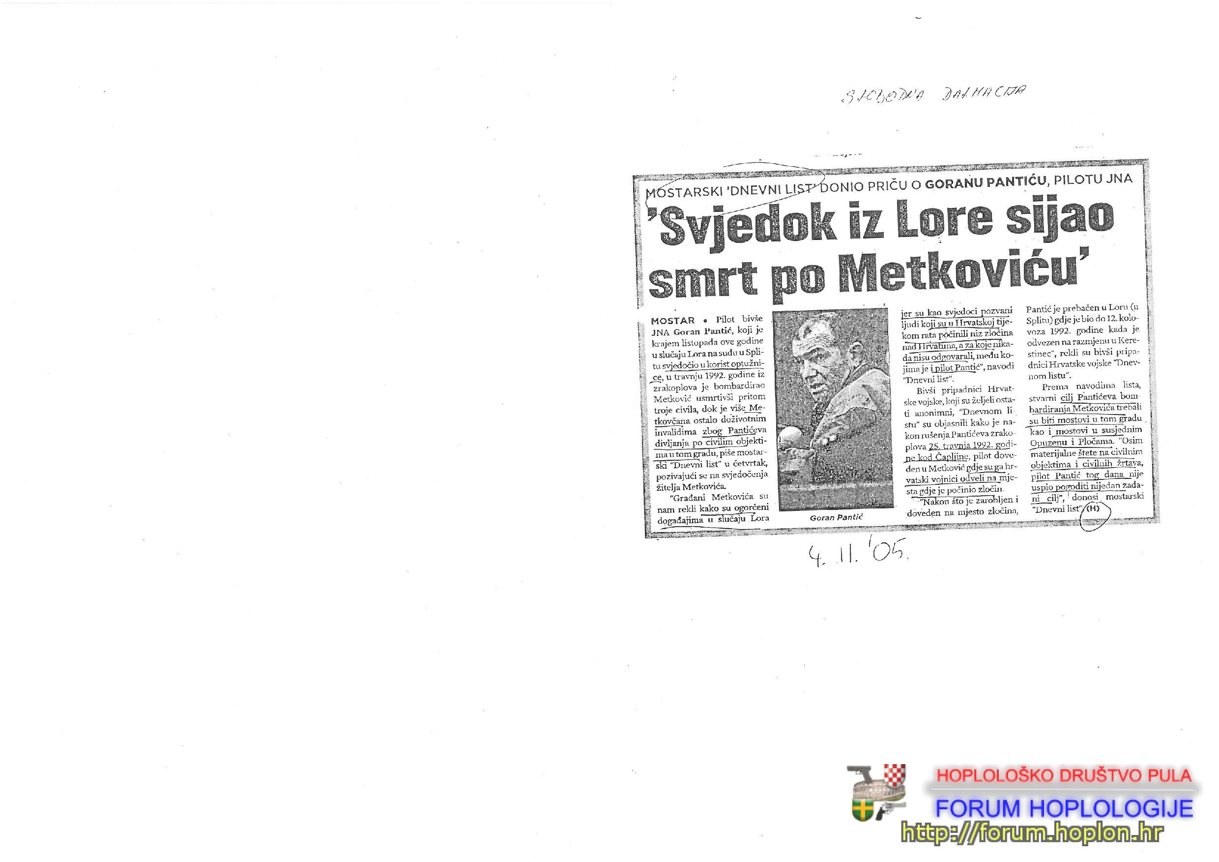Druga "žrtva i oštećenik" je pilot JNA Goran Pantić koji je u travnju 1992. godine "krmačama" bombardirao Opuzen i Metković pri čemu je poginulo troje civila dok je deset ranjeno. Njegov zrakoplov je bio srušen, a on uhićen i protvoren u "zloglasnu" LORU iz koje je na kraju razmjenjen živ i zdrav. No za njega hrvatska pravosudna tijela nisu uopće bila zainteresirana. Na kraju su obojica razmjenjena, jedan kao amnestirani ratni zločinac a drugi kao pilot koji je "samo vršio svoju dužnost". Da stvar bude još gora, obojica na prvom suđenju čak nisu ni skrivali da su ratovali protiv Hrvatske.