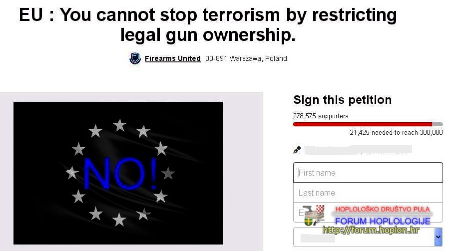 Ne pada mi na pamet ,niti ikad hoće ,bilo koga zvati ili prozivati jer je to smješno ,na ovakvo nešto me nije nitko tjerao ,nitko nagovarao ..to je isključivo pokušaj da se nešto napravi .No ,moram priznati da količinu apatije i ne zainteresiranosti ,u ovom obimu –nisam očekivao.Zašto ? S obzirom na višegodišnje odčitane dubokoumnosti po svim forumima ,deklarativne pozive na djelovanje u zakonskim okvirima,silne bune i bunice ,zajedljivosti na granici ukusa,gorljivost dok traje ‘post’ ,mislio sam da će RH biti na znatno višoj poziciji -od one na kojoj se sad nalazi.Da bi se netko ‘aktivno bavio’ onim čime se bavi ,mišljenja sam da to podrazumjeva i ovakav tip djelovanja kojim se nastoji skinuti mogućnost nametanja zakonskih okvira.Zakonskih okvira koji bi ne samo promjenili -nego uništili mnogo snova ....i stvarnošću otresli o pod sa ‘pravom’ posjeda vatrenog oružja.Ignoriranje EU namjere je davanje toj istoj EU širokih mogućnosti ,a samim tim i našem zakonodavcu .U tom slučaju bilo kakvi razgovori ili eventualni dogovori bi bili pokretani s mnogo ....mnogo gore startne pozicije .Kad krenu s onim što je sad namjera ,tada je prekasno.No….kako god….