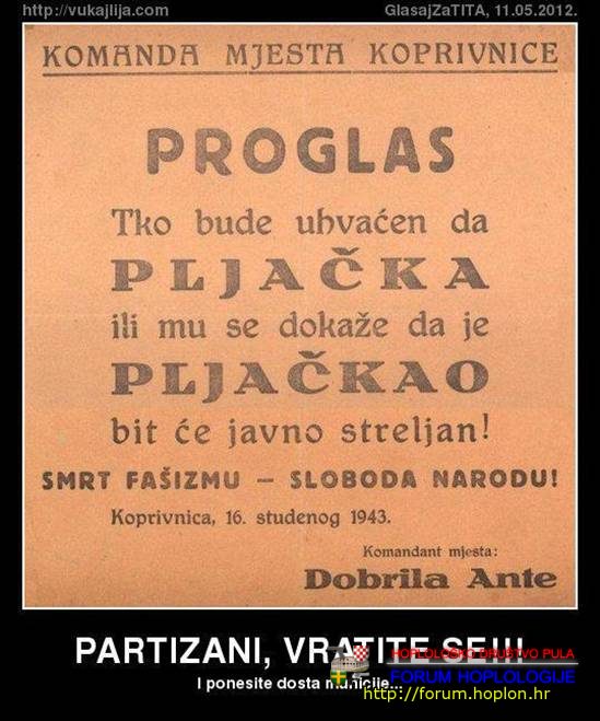 Tako su partizani mislili 1943. Već 1945 su, osvojivši vlast, okrenuli pilu naopako i nastavili tako piliti cijelo vrijeme dok su bili na vlasti. Onda su 1990 opet okrenuli pilu naopako i pile li ga pile, do današnjeg dana. I pobrinuli su se da, kad oni odu u pakao, ostave za sobom podmladak koji će nastaviti njihovim stopama